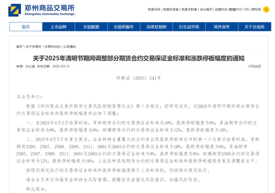 3月31日,郑商所和广期所公布清明节期间风控措施。
