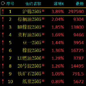 收评:沪锡涨近4% 集运指数跌超3%