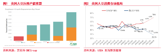 根据美国大豆协会推算,按照压榨企业新增和扩张计划,到2026年美国国内大豆压榨日加工产能预计增加233万蒲式耳,年加工产能预计达到32亿蒲式耳。2025/26年度美豆预期压榨目标是24.75亿蒲,按照预期提高的生柴掺混义务量下限55亿加仑,保守估计未来三年将增加6.3亿蒲大豆压榨需求,压榨产能限制空间也不大,而最终若设定57.5亿RVO量,压榨产能或有不足。