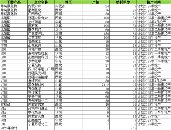 表 2.4:2025年国内甲醇非烯烃下游新增产能(万吨)