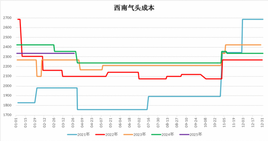 图 1.5:西南天然气甲醇成本(元/吨)