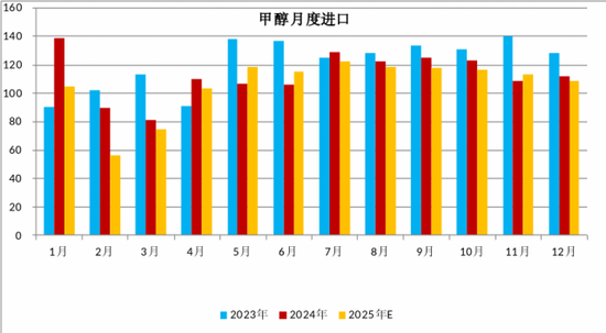2025年一季度,海外开工及产量均创历史同期新低,1-2月我国甲醇进口总量为160.41万吨,较2024年同比下降约29.52%。伊朗2024年冬季受国内能源紧缺影响,其甲醇装置于2024年11月开始陆续限气检修,与往年相比停车时间提前2个月左右,这也导致了2025年一季度我国甲醇进口紧缺情况更加严重。直到3月下旬,伊朗装置全面重启,海外开工及产量急速回升,但整体仍低于2024年同期水平。考虑到重启装置负荷提升的时间以及2-3周的船期,预计最快4月下旬到港将有显著增加,但后期也需关注伊朗能源问题是否仍制约甲醇产量,以及非伊装置意外检修等情况是否会发生。