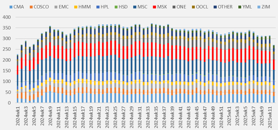 图 2.3:主流船公司绕航统计分析(TEU)