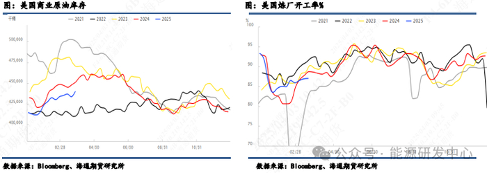 除了供应以外,其他基本面数据来看,全球原油库存仍在低位,从周度的美国商业原油库存来看,虽然在累库阶段,但库存相对位置不高。需求端来看,炼厂开工率持续增加负荷,预计提负的动作要维持2-3个月,炼厂投料继续增加,对价格形成一定支撑。