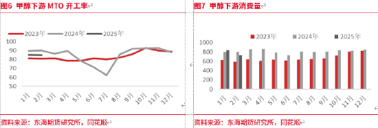 一季度MTO/MTP开工率先降后升,由于24年四季度甲醇价格不断上涨,持续压缩下游利润,12月30日兴兴MTO装置率先停车,紧接着MTO/MTP装置开始出现不同程度的降负荷和停车,甲醇价格同步回落,伴随着浙江宁波富德年产60万吨MTO于2月13日停车后,MTO/MTP 装置开工跌到25年来最低点,此后阶段性利润修复和检修结束集中重启导致MTO/MTP开工率触底回升,周度开工看达到近三年同比较高水平,因此也说明MTO/MTP开工继续上行空间不多,反而如果价格进一步上涨压缩利润,MTO/MTP装置仍有停车风险。
