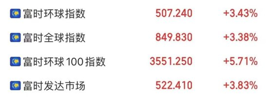 富时环球指数、富时全球指数、富时环球100指数飙升。