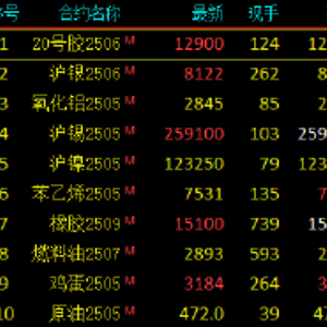 2025年4月14日,早盘开盘,国内期货主力合约多数上涨。20号胶(NR)涨近3%,沪银、氧化铝涨超2%,沪锡、沪镍、橡胶、苯乙烯(EB)涨近2%。跌幅方面,集运欧线跌近3%。