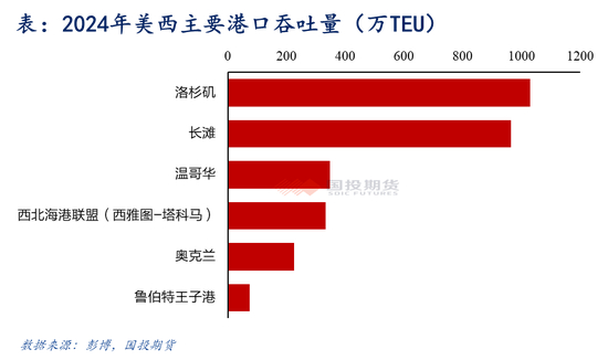 核心港口:洛杉矶与长滩港为美西核心枢纽,年吞吐量占全美港口总量的40%。
