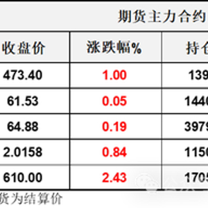【1】WTI主力原油期货收涨0.5美元,涨幅0.82%,报61.83美元/桶;布伦特主力原油期货收涨1.18美元,涨幅1.82%,报65.85美元/桶;INE原油期货收涨1.21%,报477.5元。