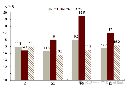 图表:2025年国内生猪季度均价预测