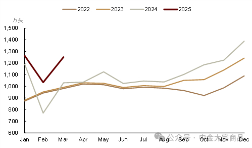 此外,价格持续走低,是否会带动产能的新一轮去化?从目前看,2月能繁母猪存栏仍维持4000万头以上,2025年全年对应能繁母猪产能区间为3986-4080万头(按照10个月滞后),持续位于3900万头正常保有量之上,若二季度猪价超跌带动能繁母猪产能开始去化,对2025年全年猪价影响较为有限,不过市场或提前进行博弈,短期为时尚早。