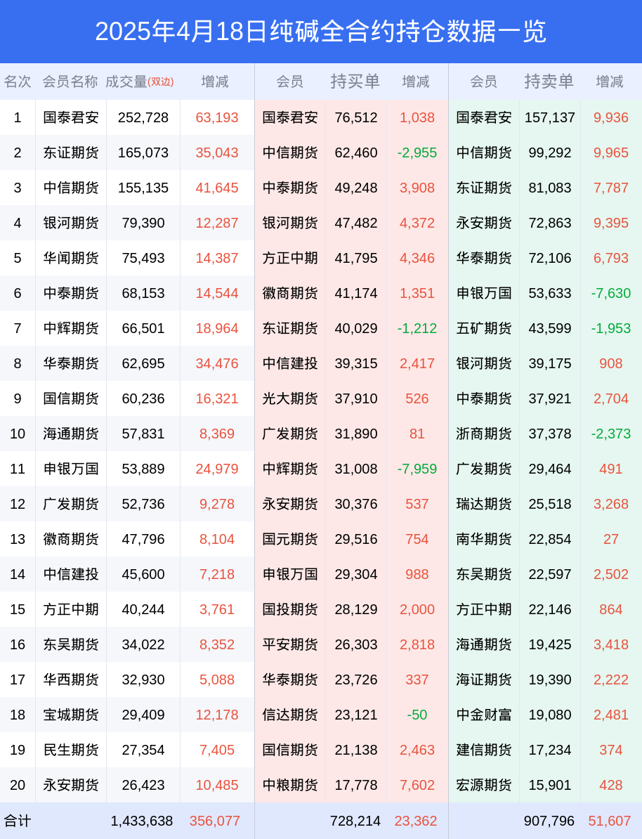 根据合并数据显示,多头前三席位为国泰君安(代客),总持仓76512、中信期货(代客),总持仓62460、中泰期货(代客),总持仓49248;空头前三席位为国泰君安(代客),总持仓157137、中信期货(代客),总持仓99292、东证期货(代客),总持仓81083;
