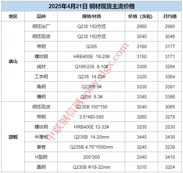 昨日钢材期货市场主要品种主力全部上涨,其中螺纹涨0.81%、热卷涨0.69%,铁矿、焦煤、焦炭涨超1%。现货方面螺纹、热卷现货价格多数上涨,线材现货价格涨跌均现,其中,螺纹现货价格涨幅在0-30元/吨之间。4月21日唐山迁安普方坯资源出厂含税上调20,报2960。