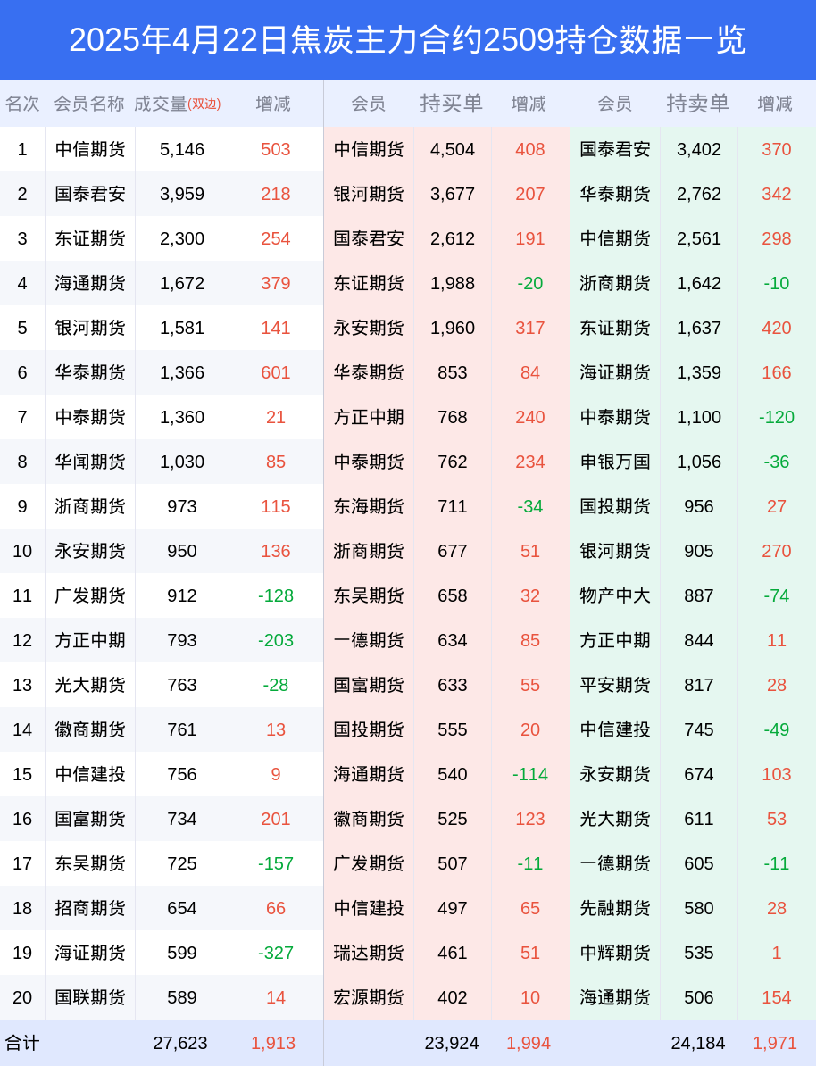 新浪期货 根据交易所数据,截至4月22日收盘主力合约焦炭2509,涨跌-1.83%,成交量2.36万手,持仓数据显示前20席位呈现净空,差额头寸为260手。