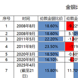 若关税僵局持续,美元信用进一步弱化,比价可能继续冲高(金涨或银跌主导)。