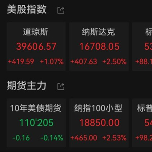 当地时间4月23日,美股三大指数集体走高。Wind数据显示,截至收盘,道琼斯工业指数、纳斯达克指数、标普500指数分别涨1.07%、2.5%、1.67%。