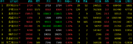 2025年4月24日,早盘开盘,国内期货主力合约多数上涨,焦炭、菜粕、沪银、焦煤、纯碱、沪锡、棉纱、豆一涨超1%。跌幅方面,沪金、低硫燃料油(LU)、SC原油跌超2%,燃料油、烧碱跌超1%,白糖、沥青跌近1%。