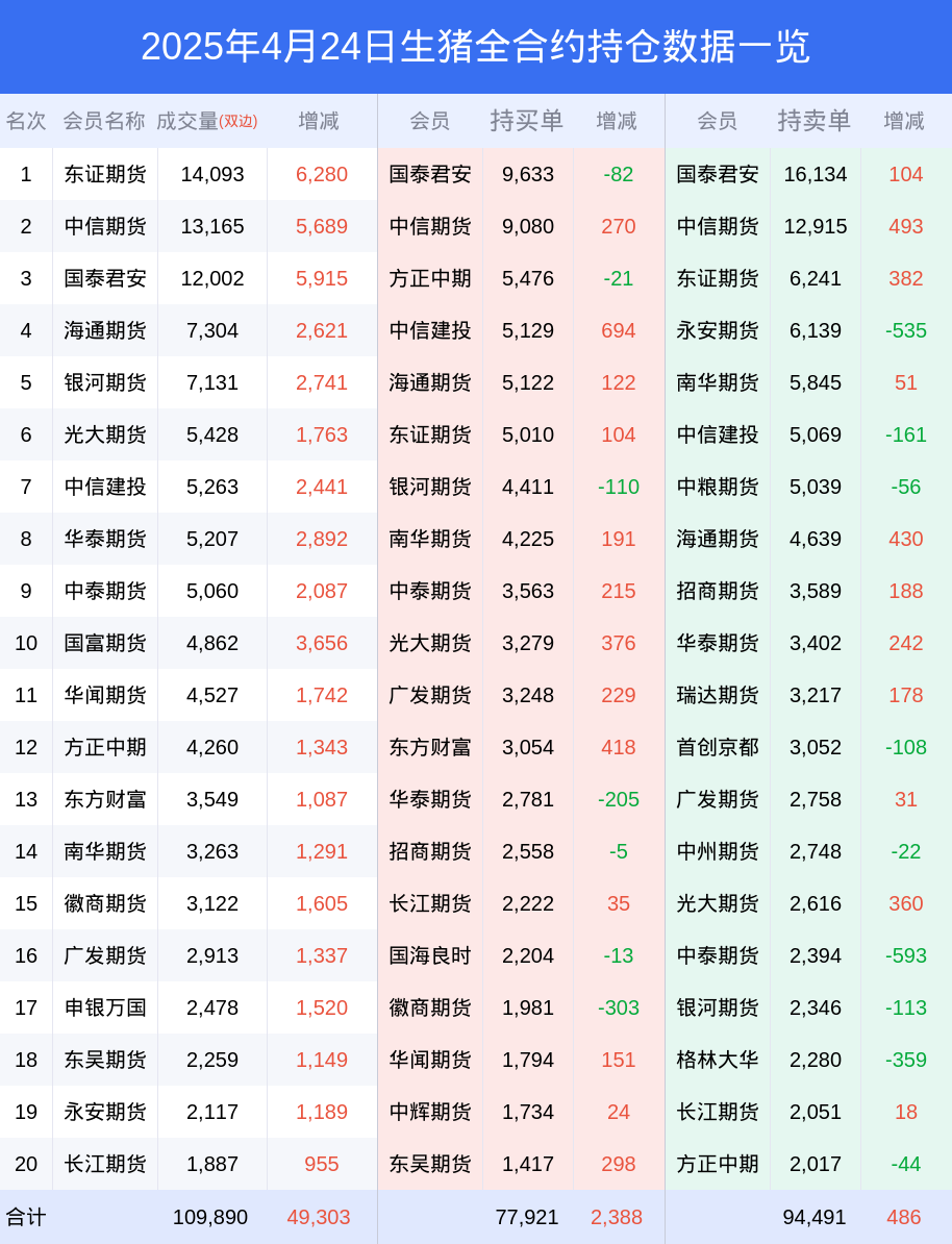 生猪期货全合约总计成交9.89万手,比上一日新增4.32万手。全合约前20席位多头持仓8.28万手,比上一日增加2381手。全合约前20席位空头持仓10.13万手,比上一日增加797手。