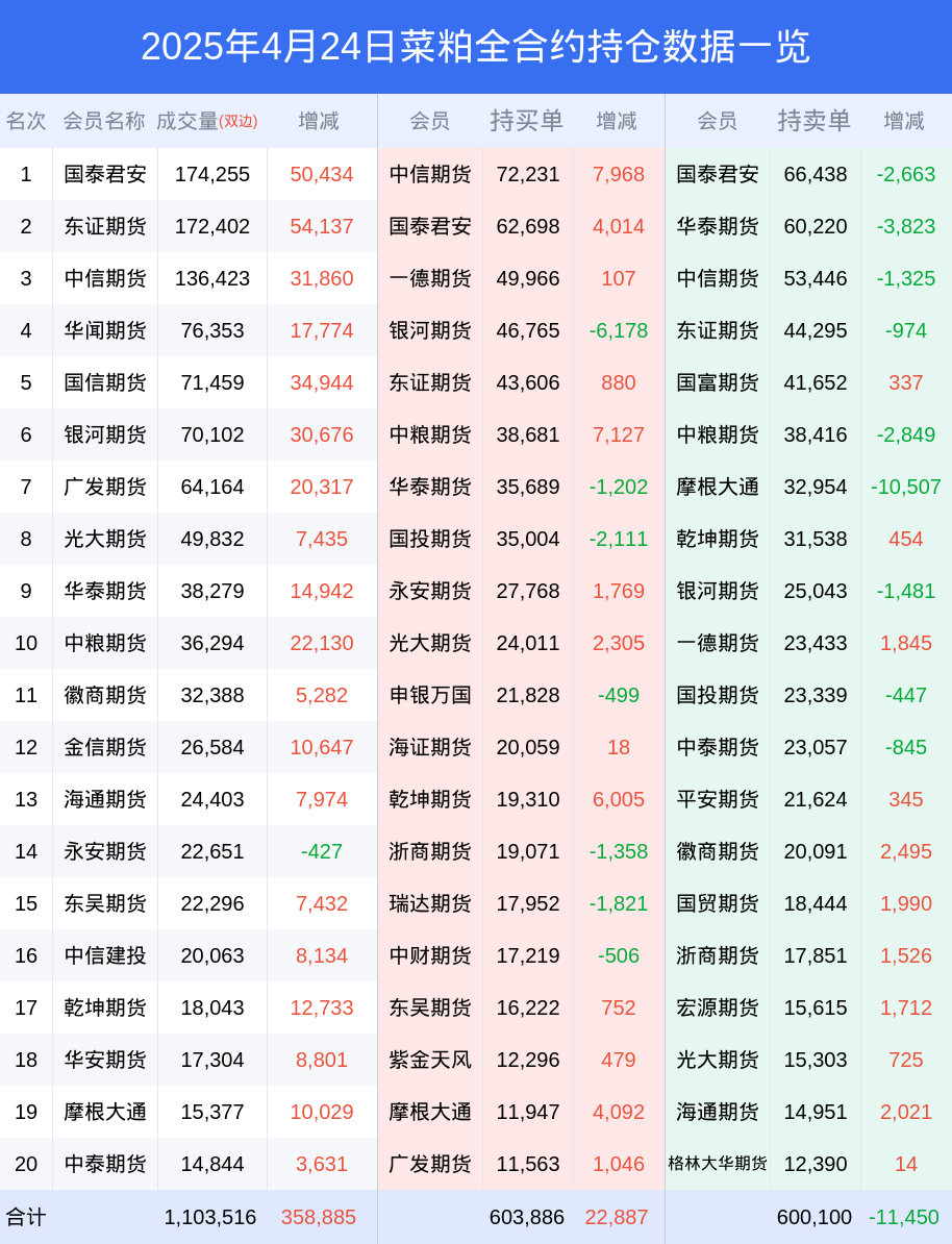根据合并数据显示,多头前三席位为中信期货,总持仓72231、国泰君安,总持仓62698、一德期货,总持仓49966;空头前三席位为国泰君安,总持仓66438、华泰期货,总持仓60220、中信期货,总持仓53446;