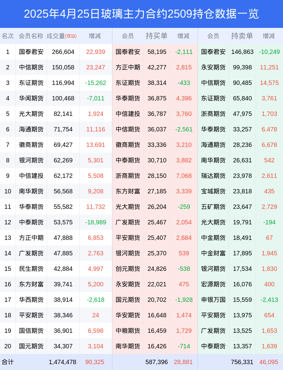 玻璃期货全合约总计成交140.02万手,比上一日新增6.78万手。全合约前20席位多头持仓81.38万手,比上一日增加9903手。全合约前20席位空头持仓101.98万手,比上一日增加2.99万手。