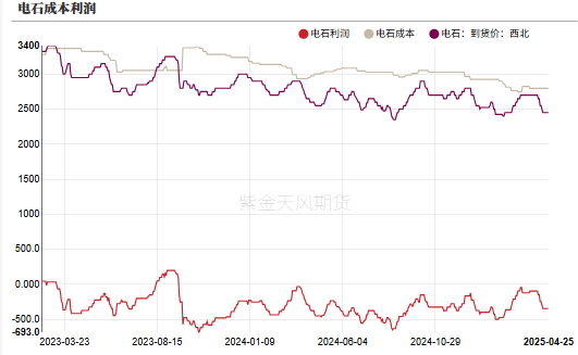 外购电石法利润走弱。西北外购电石法每吨利润-587元,华北外购电石法利润为-1043元/吨。