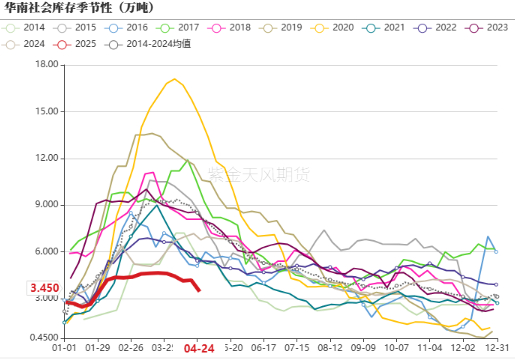 社会库存去库。社库64.59万吨,较上期降3.54万吨。其中华东样本库存61.14万吨,较上期降2.81万吨;华南样本库存3.45万吨,较上期降0.73万吨。
