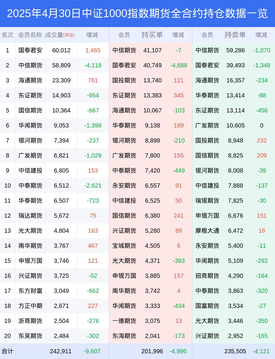 30日中证1000指数期货上涨0.56%,最新持仓变化