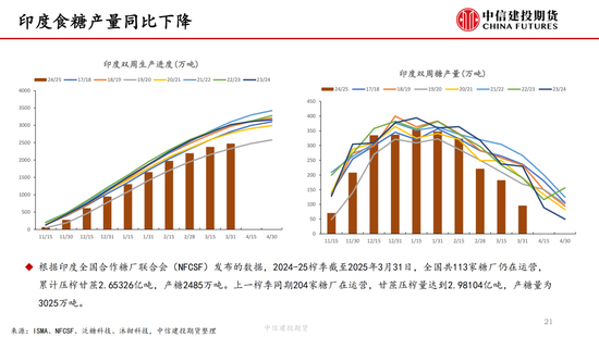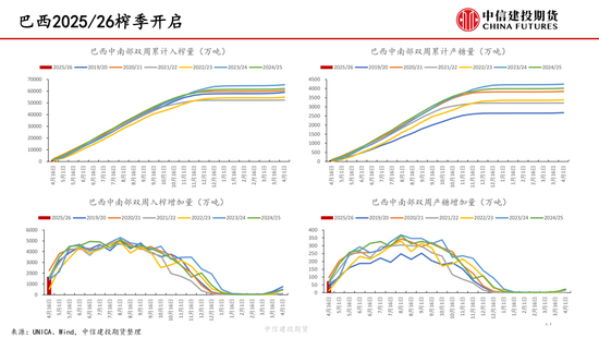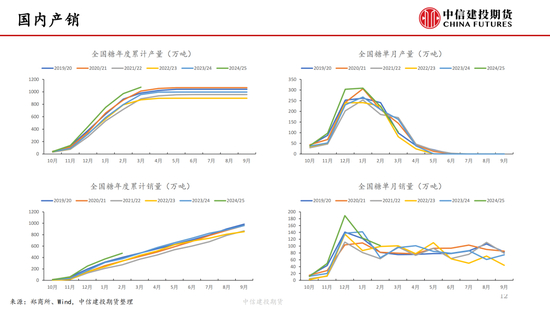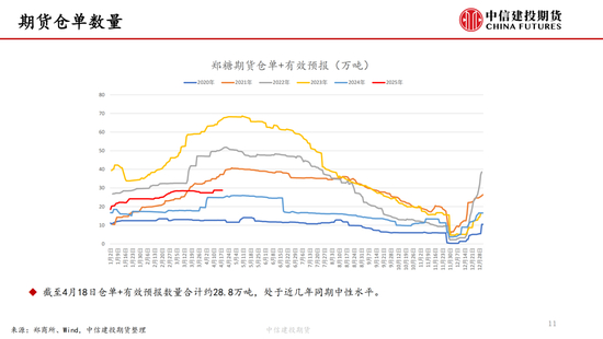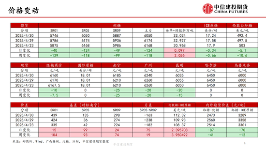 巴西新榨季开启,供应逐渐上量,Conab预估2025/26年度糖产量为创纪录的4590万吨,较上一年度增长4%;另外,受种植面积提升影响,泰国、印度在新年度有望增产。全球受到关税摩擦冲击,需求端增速堪忧,供应偏宽松的市场预期致外糖价格下行。前期国内广西长期受干旱天气影响,新季产量让市场担忧,最近广西有较多降雨,这将有效缓解旱情,但桂南地区降雨相对较少,未来甘蔗长势仍待观察。国内食糖压榨基本结束,逐渐进入纯销售季。供应端进口糖浆预拌粉于去年12月限制泰国进口,今年3月又继续限制越南进口。至此糖浆预拌粉除风味糖浆外的供应量大幅收紧,进而国内糖价的定价锚点由进口糖浆预拌粉制糖成本转向配额外进口糖成本转移。前期糖浆预拌粉进口政策的收紧和广西干旱的扰动一度让郑糖走势偏强,内外糖价走势分化。但一方面近期广西迎来降雨,另一方面,随着内外糖价走势的持续分化,配额外进口糖成本限制了郑糖价格上沿,因而短期上行受阻,高位波动有所加剧,多头需警惕阶段性回调风险。未来走势更多关注巴西新榨季生产进展。