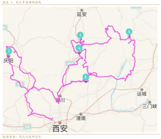 本次调研共计6天,调研样本共计246个果园,采访果农和代办共计116个,其中,市场分歧较大的陕西产区,特别是陕北产区调研样本占比相对较大,洛川和富县加起来约95个样本,并且花了大量的时间来回交叉验证;而市场分歧不大或者看起来比较明显的区域,如白水、合阳、澄县产区,看下来明显很差,减产幅度较大,样本占比相对较小;甘肃静宁庄浪产区其他调研团队反馈影响较小,主要通过电话、微信等了解情况。