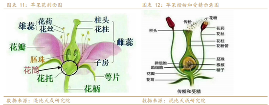 (2) 花粉管在柱头萌发后约6-30小时完成受精,品种差异较大,如金冠需6小时,红富士需更久,成功标志:花瓣脱落,子房膨大形成幼果,约授粉后2周可见明显幼果。