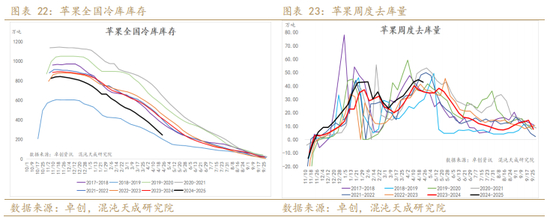 2.从新一季开称价的角度来看:我们统计从17年至今开称价相对旧季苹果走高的年份,分别为18-19季的18年10月,2020-2021产季的2020年10月,2021-2022产季的2021年10月,2024-2025产季的2024年10月,会发现几乎所有相对旧季苹果价格开称走高的年份都是在当季有减产的年份,18年是众所周知的西部霜冻大减产,2020年有西部局部的霜冻减产,2021年是西部大面积砍树和山东质量出现问题,2024年是陕西小年山西减产,由此可见,但凡减产年份,开称价均容易呈现高开状态。且进一步可发现,能做到高开称整季高走的年份自17年以来只有三个,18-19产季,21-22产季和24-25产季,而这三个年份,都有一个共同点就是西部的减产,而今年尤为特殊,因为在24-25年的基础上,西部在大年的预期下实际再次面临大幅减产,且在调研过程中发现,明显坐果好,果个偏大的园子占比非常少(除了嘎啦等早熟以外),大部分园子坐果表现差或者坐果不均匀,梢花、腋花坐果的占比较多,预计今年西部产区,特别是陕西产区果个、质量表现也会低于预期;加之目前现货库存仅次于2019年同期,现货价格表现也仅次与2019年,综上,考虑到当下强劲的现货表现以及今年的特点,新季西部半商品的收购价格低于4元/斤的可能性小于1%,且考虑到去年的基础上再次较大幅度减产,因此有望冲击有史以来最高开称平均价。