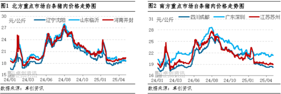 4月南北方猪肉市场价格环比有涨有降。卓创资讯监测北方重点市场白条猪肉均价18.94元/公斤,环比上涨1.85%。南方重点市场白条猪肉均价19.61元/公斤,环比下降1.95%。4月总体供应较为稳定,下游需求无明显利好,供需博弈加剧;随北方部分二育入场抢夺猪源,成本价格有所上涨,白条猪肉价格小幅反弹,但上涨阻力有限,南方受需求拖动下跌而继续震荡。