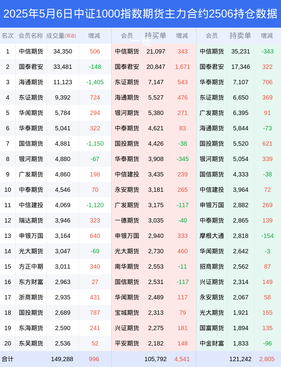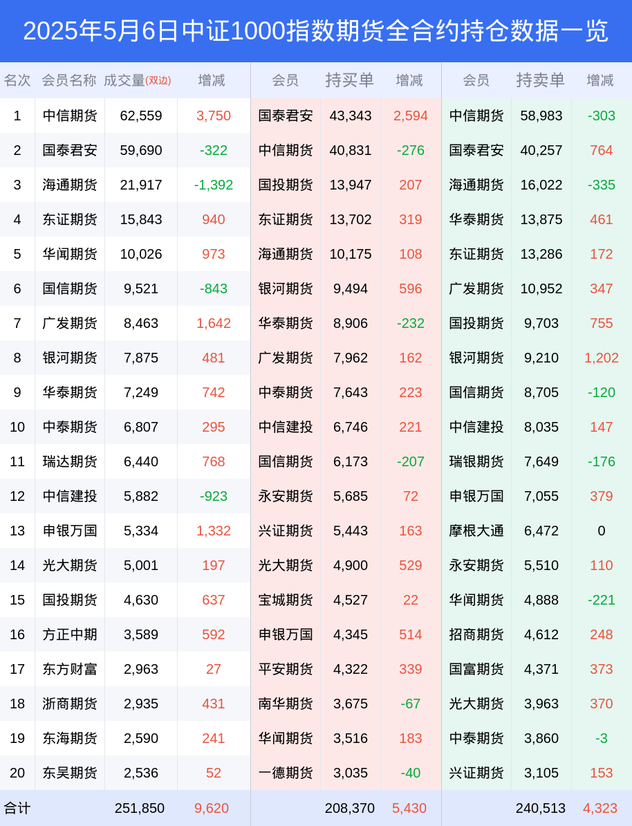 6日中证1000指数期货上涨2.39%,最新持仓变化