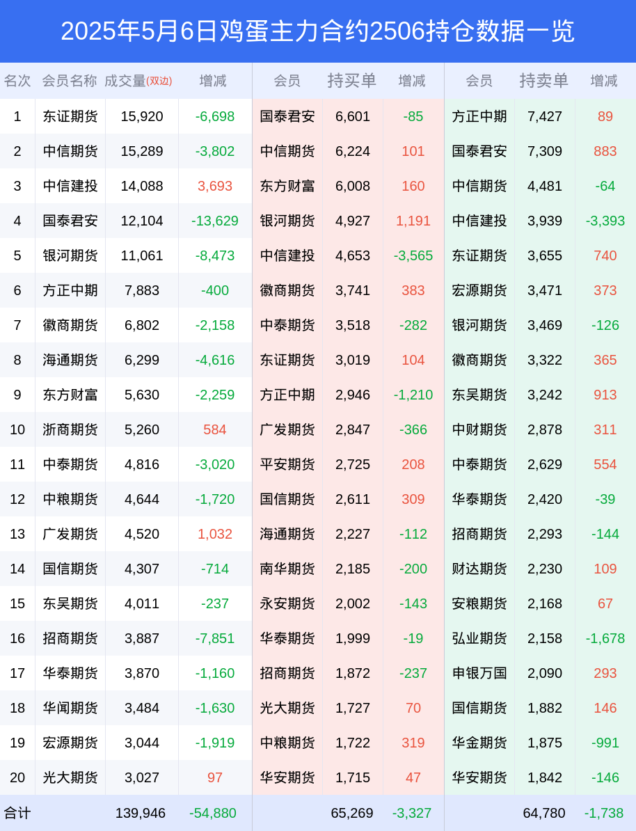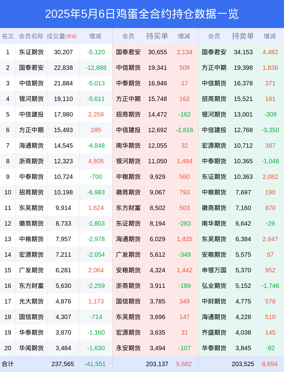 6日鸡蛋下跌2.30%,最新持仓变化
