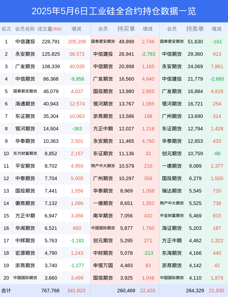 6日工业硅下跌2.57%,最新持仓变化