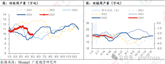 综合来看,今日盘面下跌主要受宁夏4月结算电价大幅下调所致,但是5月并非采用电力现货结算,政府对于电价补贴情况也需进一步关注,5月电价或有可能恢复前期水平。长期来看,绿电使用比例抬升、电力现货市场交易改革以及装机容量增长下,电力市场供需格局趋于宽松,合金成本仍有下移空间,政策层面影响仍需关注。合金供需来看,硅铁供需矛盾有所改善,但锰硅仍有减产定价需求,同时锰矿成本端亦难言见底。短期合金价格或将继续维持震荡偏弱格局。