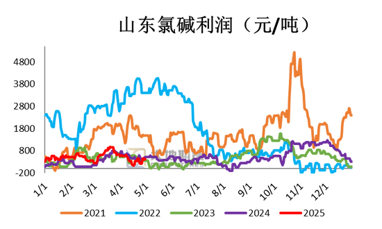 山东氯碱企业周平均毛利在349元/吨,较上周环比+2元/吨。周内山东液碱价格回落,液氯价格略有上行,周内整体氯碱利润上行。