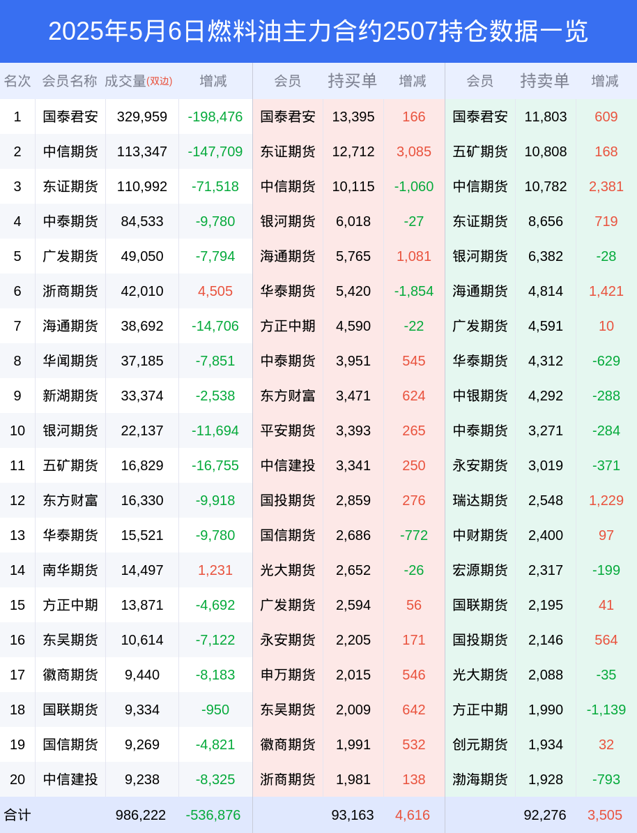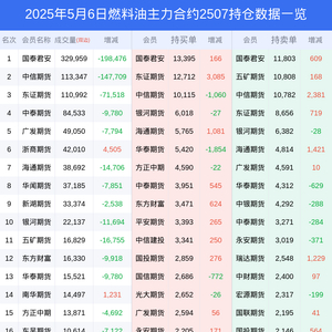 新浪期货 根据交易所数据,截至5月06日收盘主力合约燃料油2507,涨跌-3.40%,成交量59.93万手,持仓数据显示前20席位呈现净多,差额头寸为887手。