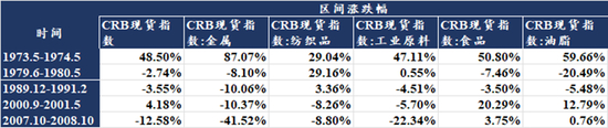 参照最经典的美国“滞胀”周期的回忆,1973-1974年CRB指数上涨49%,美国CPI同比上涨5.1%,美国GDP同比折年回落6.9%。