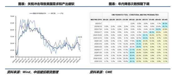 2、风偏回暖促成“铜金比价”的阶段性修复,2025年全年降息幅度预期为3次,首次降息时点或推迟至6月或7月(5月8日利率决议)。 4月非农韧性阶段性证伪“深度衰退”叙事,强化“浅衰退+高利率”组合对贵金属的压制。随后跌破3300美元关键心理关口,引发趋势跟随性抛盘。但若经济数据证实衰退深化且通胀回落,黄金仍可能重拾长期上行趋势,但需要时间来修正,目前讨论企稳还尚早。
