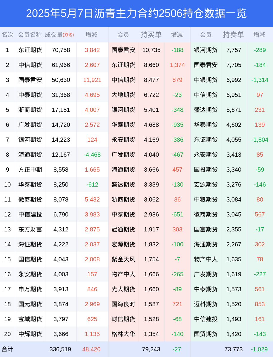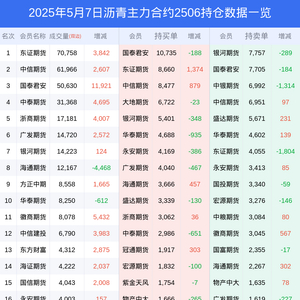 新浪期货 根据交易所数据,截至5月07日收盘主力合约沥青2506,涨跌+2.66%,成交量23.36万手,持仓数据显示前20席位呈现净多,差额头寸为5470手。