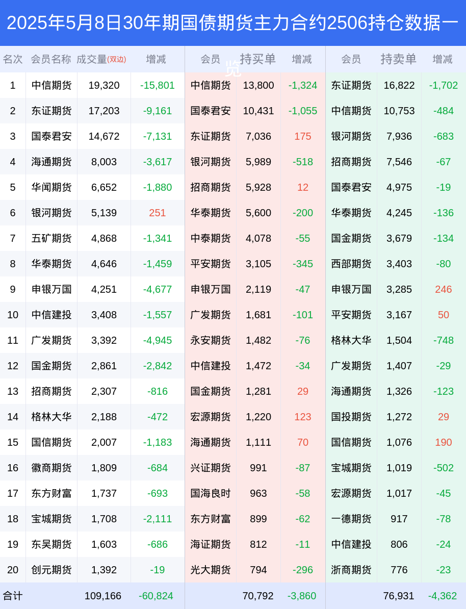 根据合并数据显示,多头前三席位为中信期货,总持仓24298、国泰君安,总持仓14138、东证期货,总持仓8744;空头前三席位为东证期货,总持仓19600、中信期货,总持仓14088、银河期货,总持仓12059;