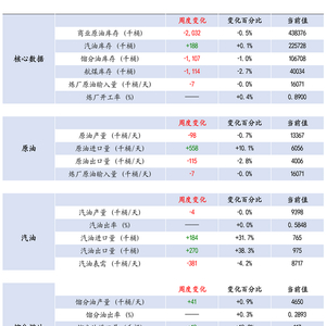 总结来看,原油商业库存去203.2万桶;成品油方面,汽油累库18.8万桶,开工率提升的情况下会逐步带动汽油产量的增加;馏分燃料油在进口量下降的情况下去库110.7万桶,表需环比下降。