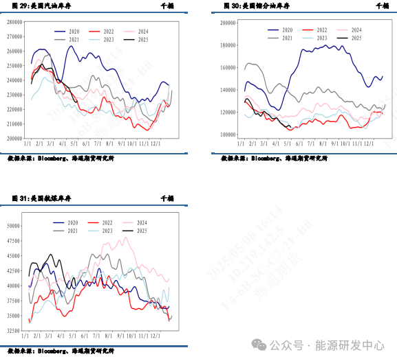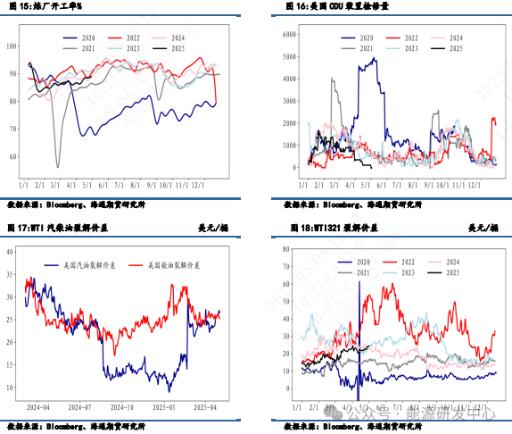 从成品油供应方面来看,上周炼厂开工率上升0.4%至89%,在裂解价差走升的情况下,后期炼厂开工仍有提负的空间。美国炼厂检修量大幅下降,基本检修季节已经全面结束。