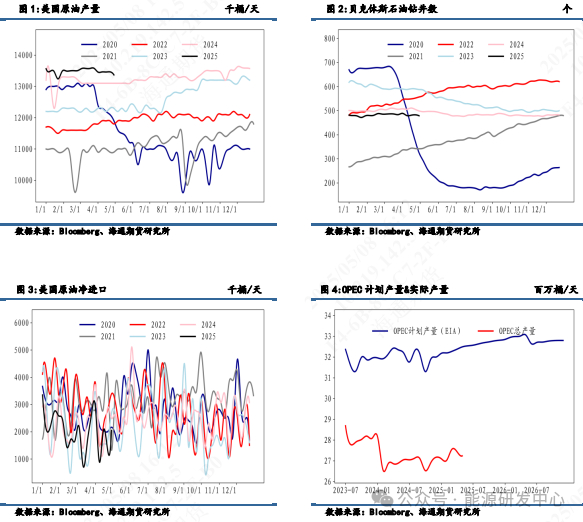 当周原油产量环比下降9.8万桶/日至1336.7万桶/日;贝克休斯石油钻井数小幅减少4台,处于历史低位水平,显示页岩油产量增长动力不足。美国原油进口量环比增加55.8万桶/日至605.6万桶/日,出口量环比减少11.5万桶/日至400.6万桶/日,净进口量环比上升。
