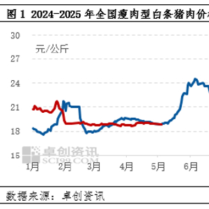 根据卓创资讯监测,2025年4月全国白条猪肉价格主旋律窄幅震荡运行,5月“劳动节”假期过后猪肉价格先震荡而后微幅下跌。截至5月7日,全国瘦肉型白条猪肉均价为18.90元/公斤,较4月最后一个工作日跌0.28%。这主要是因节后终端需求欠佳,而屠宰猪源供应充足共同导致的。
