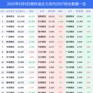 新浪期货 根据交易所数据,截至5月09日收盘主力合约燃料油2507,涨跌+2.72%,成交量56.12万手,持仓数据显示前20席位呈现净多,差额头寸为7951手。