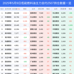 新浪期货 根据交易所数据,截至5月09日收盘主力合约低硫燃料油2507,涨跌+2.54%,成交量11.62万手,持仓数据显示前20席位呈现净空,差额头寸为2033手。