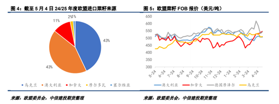 当前加菜籽需求风险更多来自于欧盟。截至25年5月4日,本年度欧盟菜籽仅累计进口加菜籽62.1万吨,与此同时澳菜籽已经达到234.5万吨。当前加菜籽报价已经高于德国、澳大利亚和乌克兰,缺乏性价比优势,这可能导致后期加菜籽出口数据表现放缓。不过,总的来说在欧盟新季菜籽上市之前,全球菜籽结转库存均处于偏低水平。