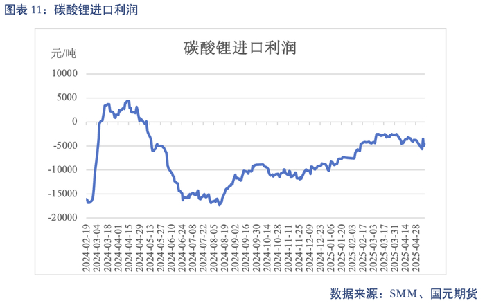 截至5月9日,碳酸锂进口利润为-4597.2元/吨,较上周减621.6元/吨。